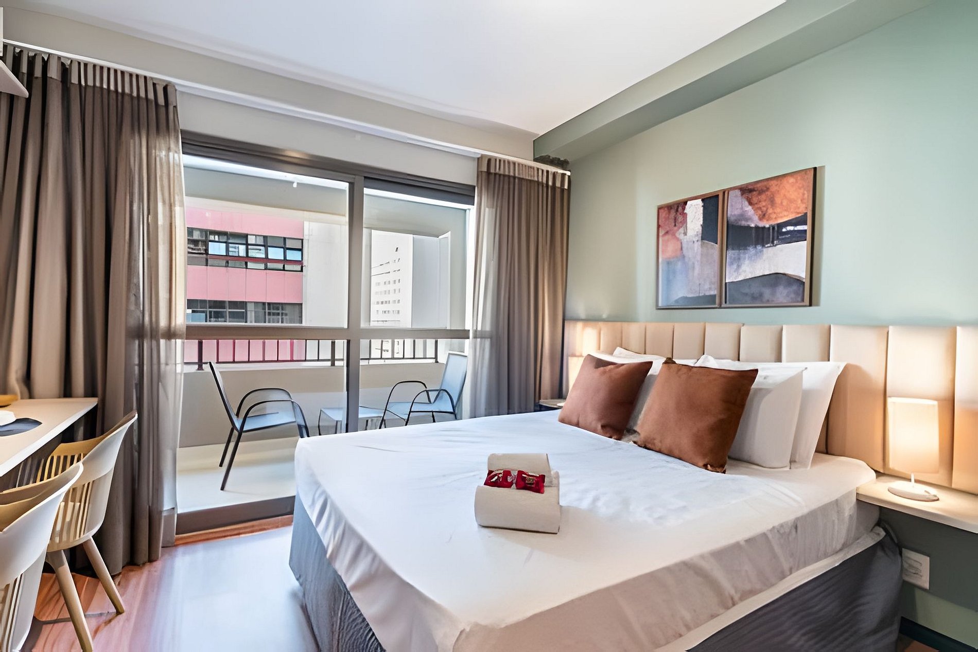 Studio de 24m² com decoração elegante e única, pensado para que nossos hóspedes se sintam em casa em estadias de curta ou longa duração. Espaço ideal para pessoas que viajam sozinhas, entre amigos, casais e famílias com filhos! Hospedamos até 2 hóspedes com conforto, o ambiente é moderno e versátil. Ficamos localizados à 950m do metrô Moema, cerca de 5min andando, e próximo ao Aeroporto de Congonhas. Rua tranquila, com farmácia, padaria e supermercado no entorno. O apartamento está pronto para hospedar você, seus amigos e familiares com muita estrutura, conforto e segurança. Venha apenas com a bagagem, o resto é com a gente! No apartamento você vai encontrar: - Wi-Fi - Self check-in - Smart TV - Roupas de cama e banho - A/C silencioso - Utensílios básicos de cozinha - Sanduicheira - Cafeteira Nespresso - Ferro de passar - Secador de cabelo - Cortina blackout - Travesseiros Nas áreas comuns você terá acesso à: - Lavanderia compartilhada da OMO (paga à parte) - Piscina externa (não aquecida) - Academia - Co-Working Nossos hóspedes podem utilizar as áreas comuns do prédio, com exceção da churrasqueira. O acesso ao condomínio e áreas comuns é feito mediante a identificação de todos os hóspedes e possíveis visitantes para liberação na portaria. Por isso solicitamos foto dos documentos de todos que utilizarão o imóvel. Estaremos disponíveis para atendimento na plataforma e também por telefone após a confirmação da reserva.